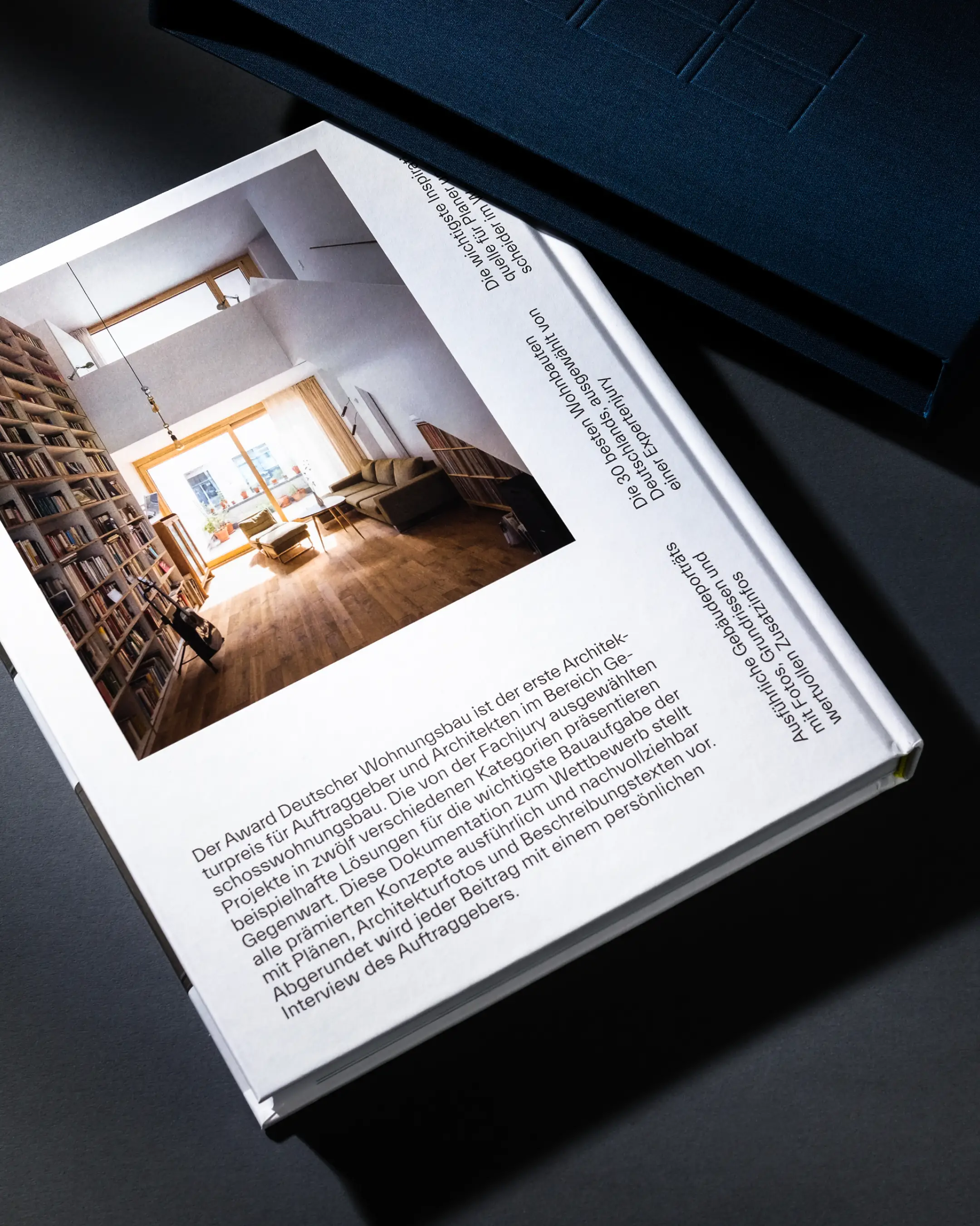 Gestaltungskonzept für die Buchreihe „Ausgezeichneter Wohnungsbau“, das die prämierten Projekte präzise und hochwertig in Szene setzt. Eine reduzierte Typografie und großzügige Bildräume verleihen der Publikation eine zeitlose, architektonische Anmutung. Das Buch ist im Callwey Verlag erschienen.